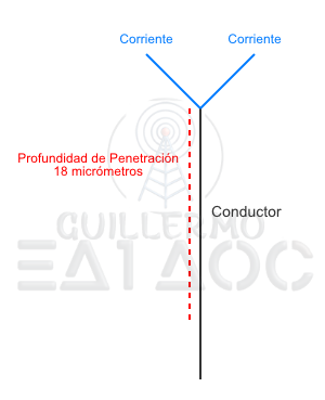 Esto significa que más del 99 % de la corriente circula en los primeros 0,1 mm desde la superficie del conductor.
