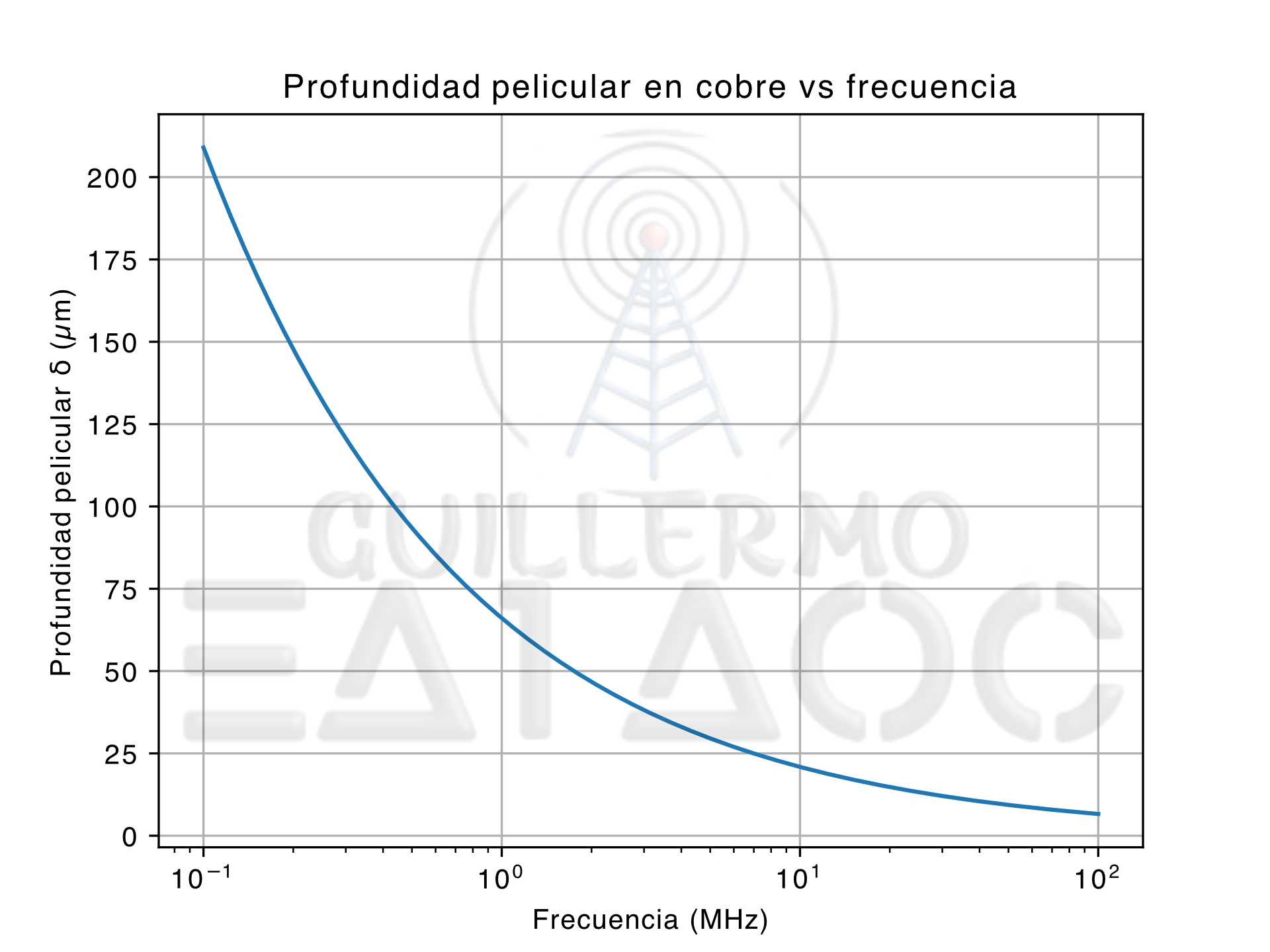 - δ es la profundidad pelicular (m)