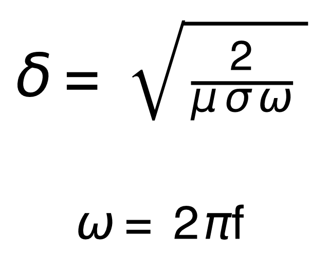 La profundidad de penetración, o profundidad pelicular (δ), se define como la distancia desde la superficie del conductor a la cual la densidad de corriente se reduce al 37 % de su valor máximo superficial. Se expresa mediante la ecuación: