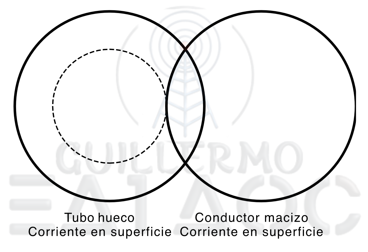 Dado que la corriente circula esencialmente por la superficie, un tubo hueco presenta una resistencia AC prácticamente idéntica a la de un conductor macizo del mismo diámetro exterior, con claras ventajas mecánicas.